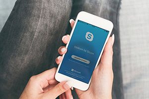 Op een tablet of smartphone ga je naar de app store (iOS of Android) om de skype-app te downloaden.