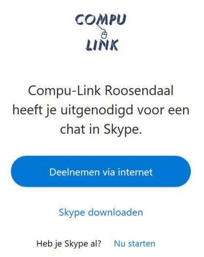 Als u op de Skype-knop klikt op deze website, krijgt u het volgende scherm: